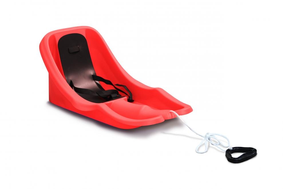 Bob s opěradlem a pásy, určené pro nejmenší. Vyrobeno z kvalitního plastu. Navrženo speciálně pro nejmenší děti, jednoduchý a spolehlivý systém tříbodových bezpečnostních pásů, ergonomický sedák s protiskluzovou úpravou pro pohodlnou jízdu