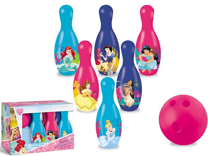 Sada od italského výrobce MONDO je kvalitní a mimořádně pěkná bowlingová sada pro dívky od 3 let. V dětské kolkové soupravě se nachází 6 barevných kuželek s veselými obrázky s motivem Disney Princess a žrůžová bowlingová koule. Kuželky vysoké 18 cm jsou vyrobeny z kvalitního plastu a jsou mimořádně dobře vyvážené. Koule je akorát těžká a velmi dobře padne dítěti do ruky. Tato Kolková souprava jistě přinese dětem mnoho radosti.Kuželky (nebo bowling) jsou velmi zábavnou hrou, která se dá hrát i uvnitř i venku.