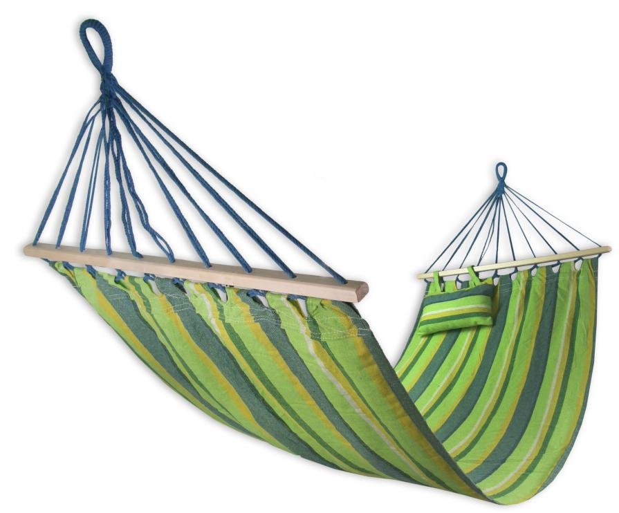 Houpací bavlněná síť Sedco 200x80cm s výztuhou a polštářkem zelená