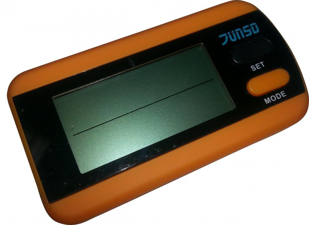 Profesionální digitální krokoměr – pedometr JUNSO JS-218 s 3D senzorem nabízí na 2-řádkovém podsvíceném displeji měření počtu kalorií, hodiny a kalendář, počítání spálených kalorií, měření překonané vzdálenosti, měření času chůze, průměrnou rychlost, aktuální frekvenci kroků a cílový alarm.