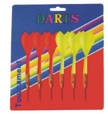Šipky kovový hrot: sada šesti šipek s kovovým hrotem pro klasické šipky.
